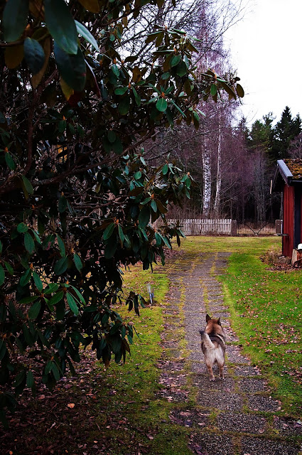 MORGONPROMENAD Under tiden som min mat står och sväller på diskbänken och husses gröt sväller i mikrovågsugnen tar vi oss en promenad. Frukosten måste få plats i min alldeles hopkrympta mage.